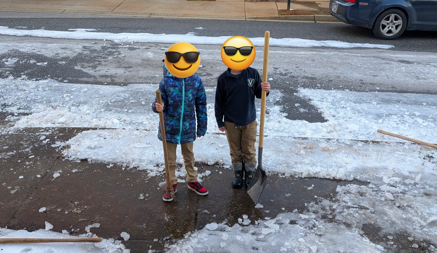 Kerr and Carter worked hard to remove ice from many driveways.