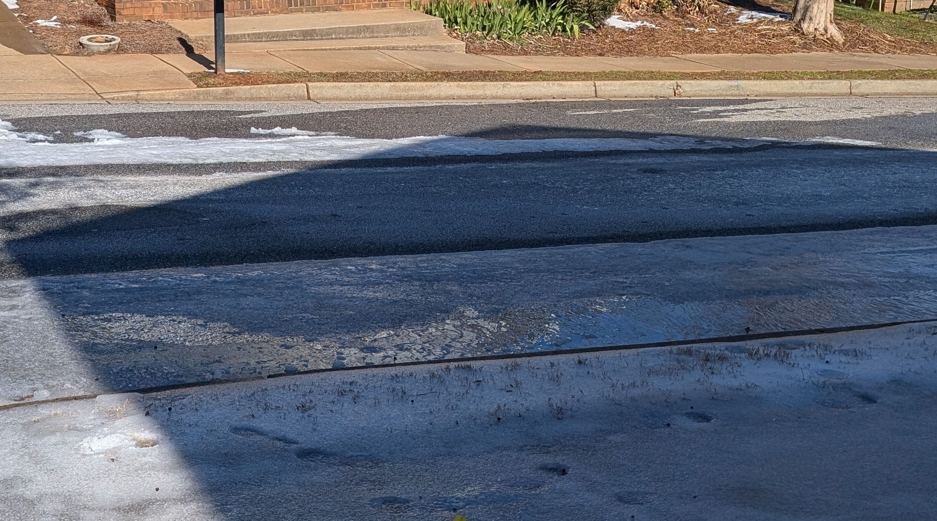 As the days passed and business returned to normal, something become strikingly clear: the ice was not melting on one side of the street. Many homes cast shadows over sidewalks and driveways, preventing the sidewalk ice from melting.