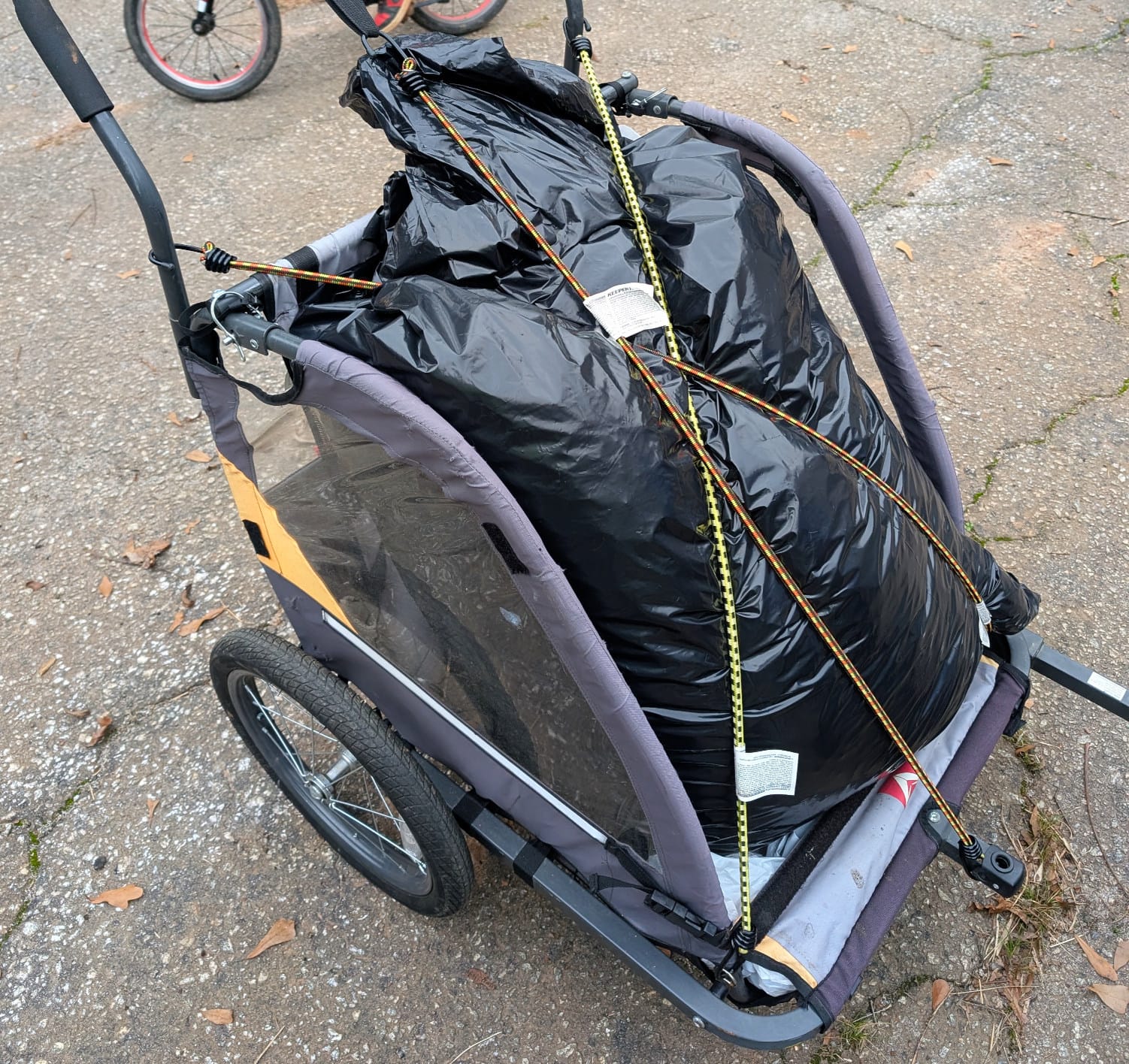 The kids completely filled the large trash bag with leaves!